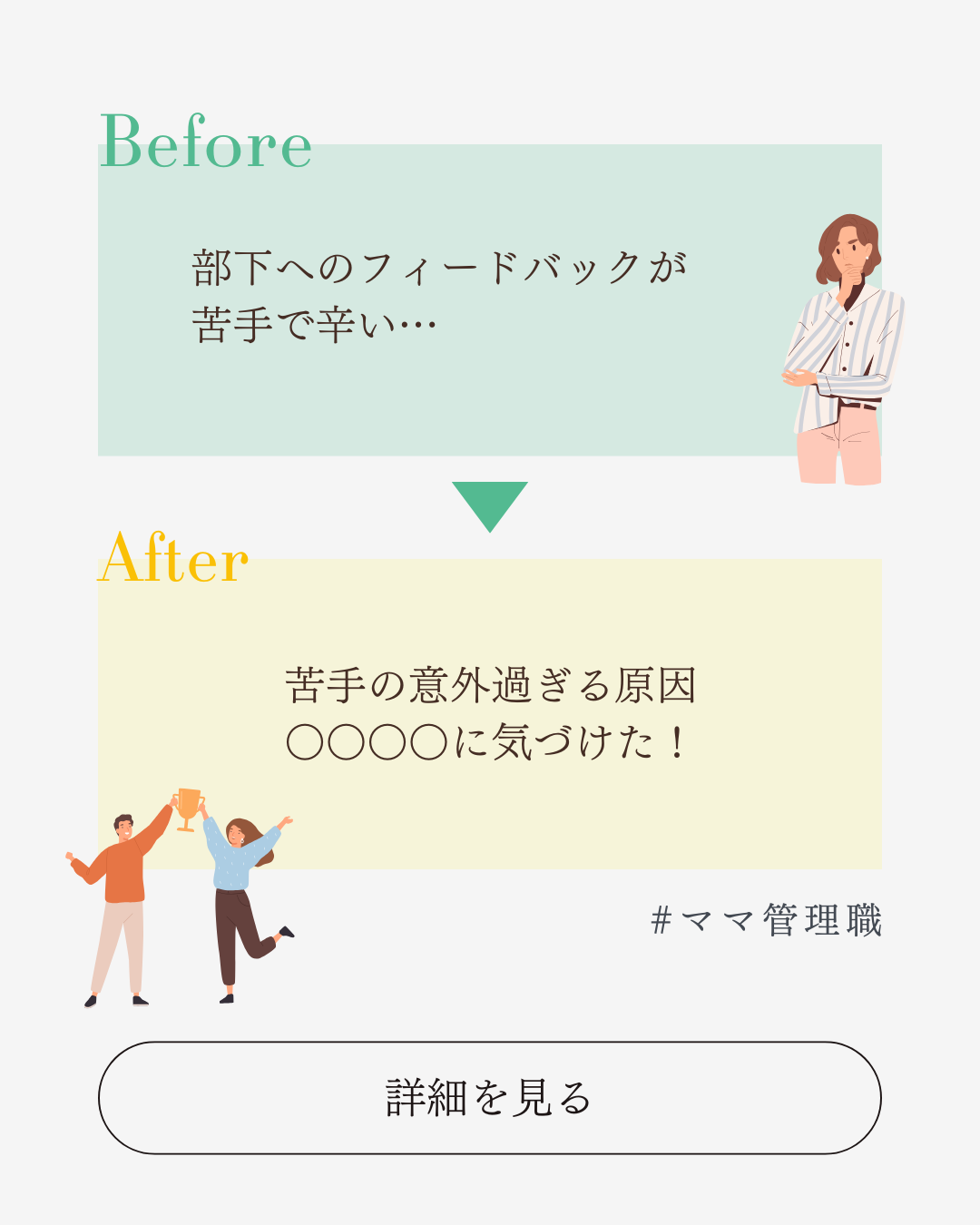 今の悩みが解決しても、必ず新たな悩みに出会います。CoParentsのコーチングを通じて、自分で悩みを分析し、解決に必要な行動を取る力を養います。