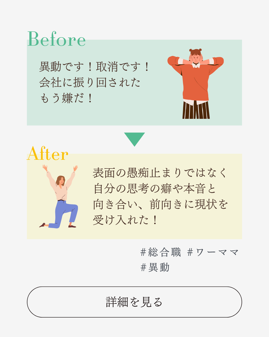適応障害や不妊治療を経験し、約10年間一人で問題を抱える日々を過ごす中で、パートナーにも言えないようなパーソナルな問題を誰かに聞いてもらうことの重要性や共に未来を考えてくれる人の有難さを痛感し、コーチングを待っている人がたくさん居るはずだ!との想いから、コーチングに従事。