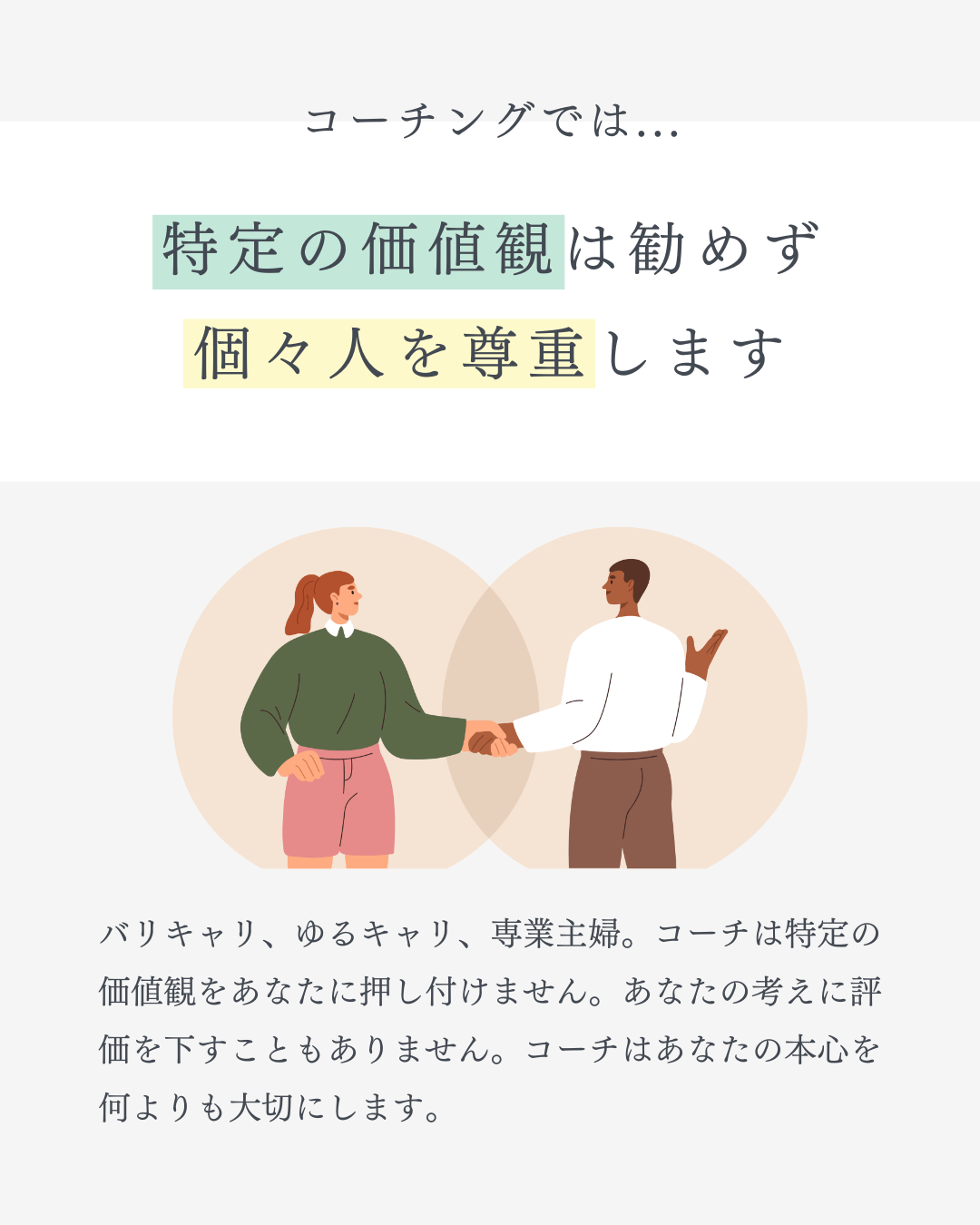 コーチングを通じて悩みを解決し、理想を生きる力を養うには継続してコーチングを受ける必要があります。しかし、プロコーチのコーチングは1回2万円以上することも。CoParentsではワーママがコーチングを継続しすいよう、1回8000円台~の価格にしています。